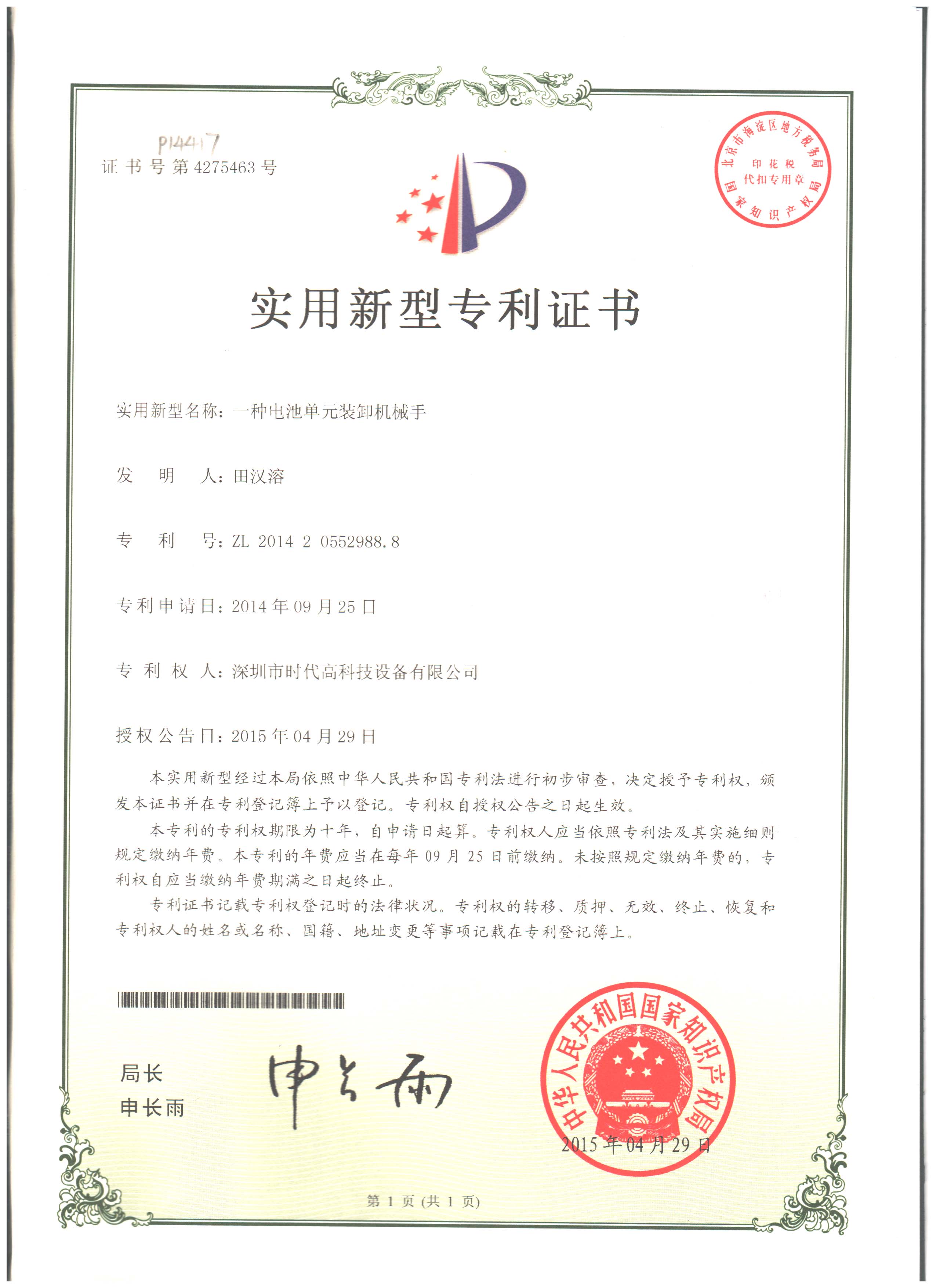 电池单元装卸机械手专利