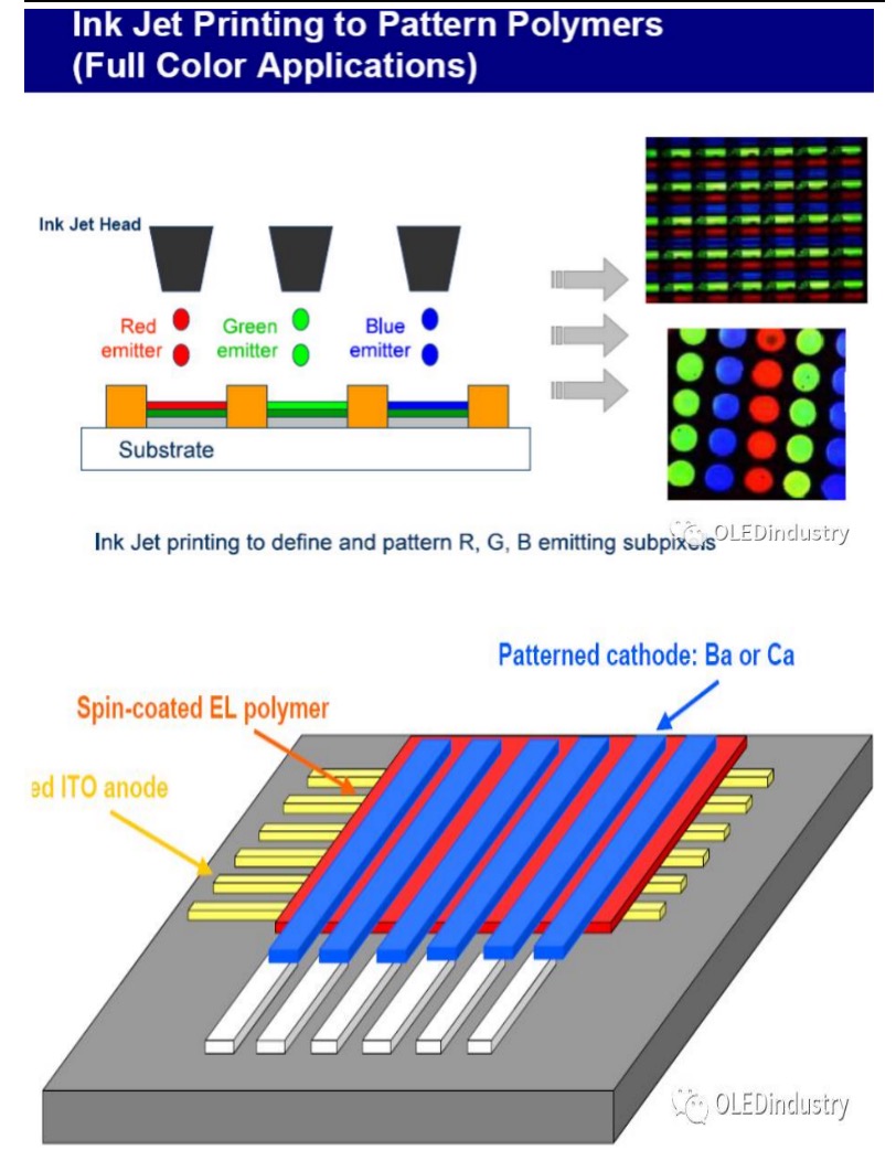 喷墨方式制作三基色象元,易于实现彩色和全色显示工艺简单